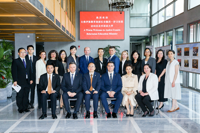 5月20日,白俄罗斯教育部部长安德烈·伊万涅茨率代表团访问北京外国语大学。北外校长、党委副书记贾文键,党委常委、副校长赵刚会见伊万涅茨一行。中国教育部国际合作与交流司二级巡视员席茹出席活动。