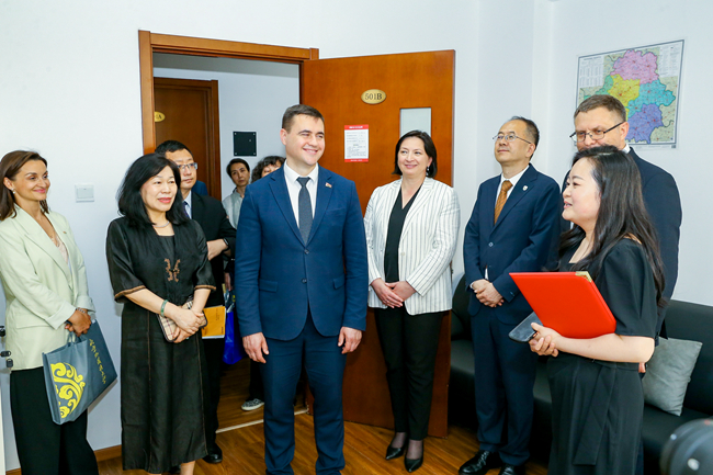 随后,伊万涅茨参观了北外白俄罗斯研究中心,他高度赞扬了中心多年来的建设成果,与中心师生亲切交流互动。
