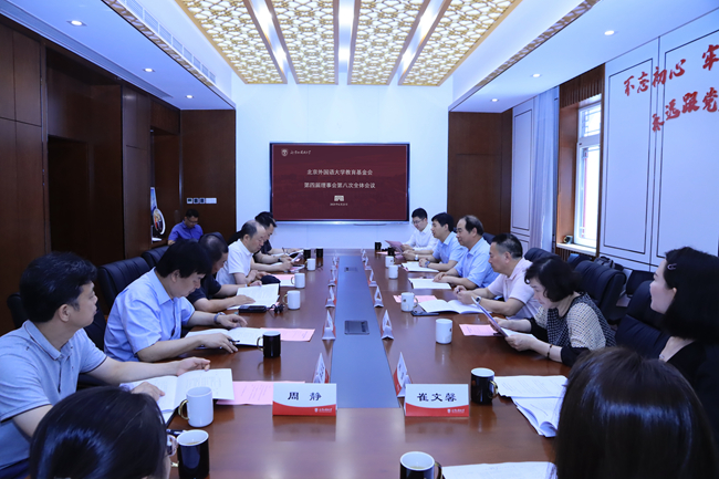 6月23日,北京外国语大学教育基金会第四届理事会第八次全体会议在校友之家举行。北外党委书记、教育基金会理事长王定华,校学术委员会主任、教育基金会副理事长袁军出席会议,基金会第四届理事会理事、监事参会。会议由教育基金会秘书长姚雪主持。
