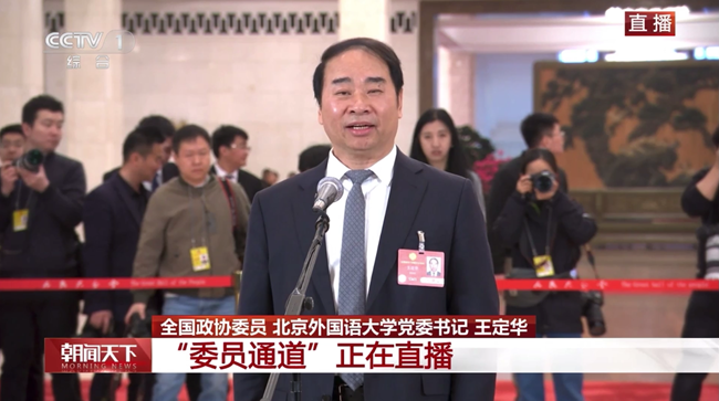 全国政协委员、北外党委书记王定华在“委员通道”回答记者提问