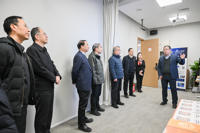 在人工智能与人类语言重点实验室,于英杰书记听取了实验室主要情况介绍,参观了人生历程与记忆智能实验室、多语言认知与发展实验室,观看了实验室孵化的北外多语平台、北外虚拟数字教师系统和智能阅读助手等应用操作演示,深入了解了实验室在语言学习机理研究、基于人工智能的语言教学研究、多语种语料库等方面取得的重要成果。