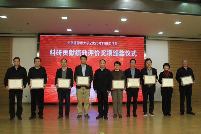 会上举行了2024年科研绩效贡献评价获奖颁奖仪式。基于2023年教师科研贡献绩效,北外评选出2024年“优秀科研集体奖”“学术特别贡献奖”“优秀科研个人奖”“学术新秀奖”“优秀科研服务奖”以及“优秀科研成果奖”。