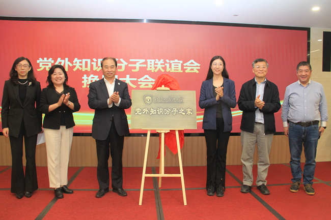 大会现场举行了“党外知识分子之家”揭牌仪式。王定华和郝媛共同为北外“党外知识分子之家”揭牌。