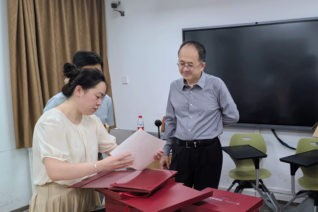在录取现场,贾文键为2024年三名本科新生签发录取通知书,听取了今年录取工作的进展及生源情况汇报,并围绕招录排位数据、学科专业建设等方面展开讨论。贾文键对工作人员的辛勤付出表示感谢,对学校招生工作给予肯定。