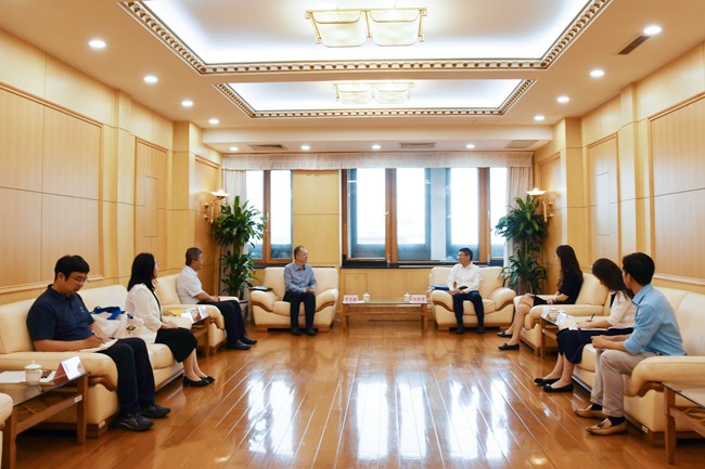 7月2日,北京外国语大学校长、党委副书记贾文键率队拜访商务部,商务部人事司司长王东堂会见了贾文键一行。