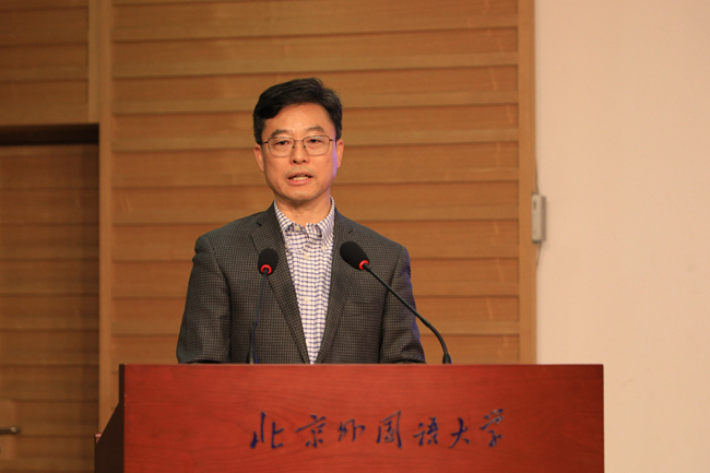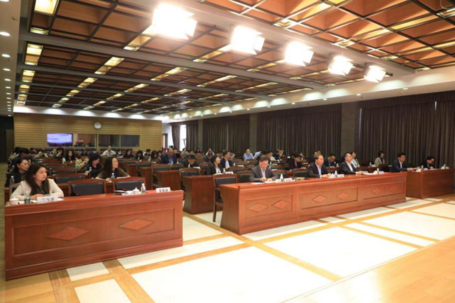 贾文键向认证专家组汇报了北外来华留学工作的基本情况、特色和亮点,以及来华留学生高等教育质量认证自评自查情况。他表示,北外已经做好准备,全力迎接和配合审查工作,请各位领导、专家对北外来华留学工作存在的问题、短板提出宝贵意见和建议,贡献真知灼见,帮助北外进一步提升来华留学高等教育质量。