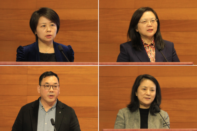 各职能部门与学院代表分别就综合评估改革方案的具体内容进行了阐释和介绍。学生工作部部长陈海燕围绕综合评估改革方案制定过程和方案细则进行了题为“把握时代脉搏,引领青年成长”的汇报,教务处处长李莉文围绕培养方案修订进行了题为“加强‘五育’并举构建本科人才全面培养体系”的汇报,后勤与基建处处长陈军平围绕劳动教育实施方案进行了题为“以劳树德、以劳增智、以劳强体、以劳育美”的汇报,英语学院党总支书记殷悦代表各学院围绕学院试点情况进行了题为“‘五育’并举育英才,道济天下强家国”的汇报。
