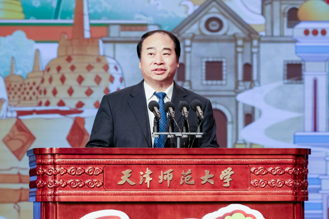 1月6日,北京外国语大学党委书记王定华应邀出席在天津师范大学举行的首届京津冀东盟留学生“我与中国”中文故事短视频总展演活动并致辞。