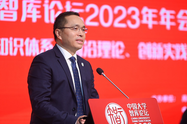 2023年12月28日,中国大学智库论坛2023年年会在复旦大学举行,教育部党组成员、副部长翁铁慧出席会议。年会以“建构哲学社会科学自主知识体系:前沿理论、创新实践与未来探索”为主题,来自全国70多所高校150多家机构的近300位专家以及30余家机构和媒体的代表参加论坛,为哲学社会科学自主知识体系建构建言献策。北京外国语大学校长、党委副书记杨丹受邀出席年会并作主旨报告。