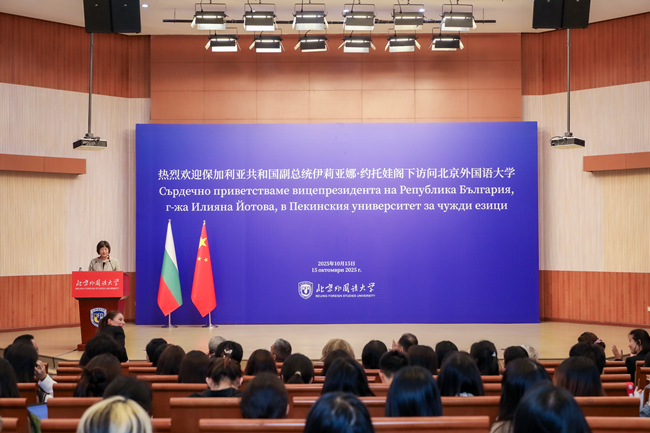 贾文键代表北外师生致欢迎辞。他表示,北外高度重视中保人文交流,自1951年开设中国首个保加利亚语专业以来,在保加利亚语言教学、文化研究及推广领域取得了丰硕的成果,成为了两国青年学者交流合作的重要平台。期待以此次约托娃副总统访问为契机,进一步深化与保加利亚各界合作,培养更多青年人才,让两国青年以语言为媒、学术为桥,让中保友谊焕发新的活力。