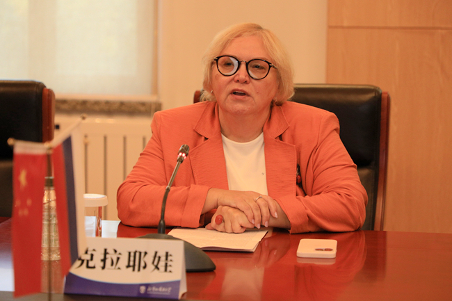 莫斯科国立语言大学校长克拉耶娃代表校长团致辞,表达了各校与北外建立和深化合作关系、开展经济、信息、大数据等多领域项目的意愿。克拉耶娃充分认可北外在人才培养上取得的成绩,表示将全力支持两校在学生互换、师资配备、孔院建设等已有深厚合作基础上,携手打造更多合作项目。