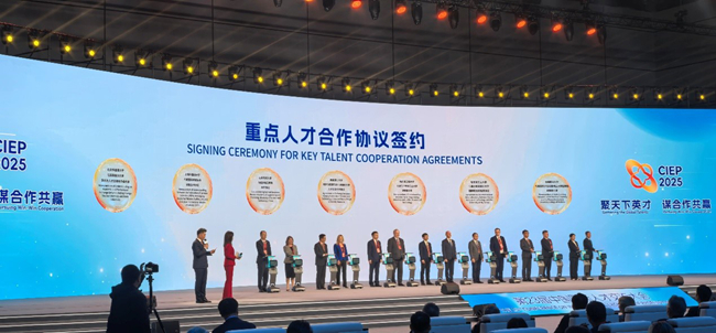 在开幕式重点人才合作协议签约环节,北京外国语大学与英国基尔大学签署学术及人才交流合作备忘录。贾文键与基尔大学副校长唐娜·李作为双方代表出席签约仪式。根据合作备忘录,两校将在本科和硕士层次中外合作办学、学术会议组织、教师与学生交换、短期交流项目等多个领域开展深度合作,共同推进人才交流合作。