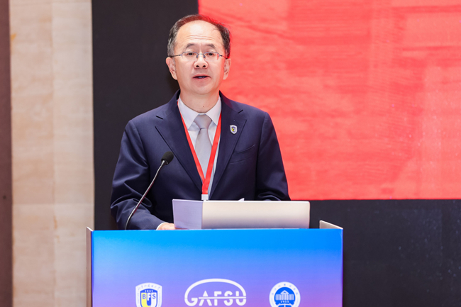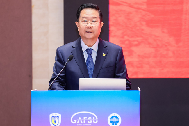 贾文键在致辞中表示,外国语大学不仅要传授语言与文化,更要塑造未来与发展;不仅要研究区域,更要联通世界。他代表联盟理事会向与会机构代表提出面向未来发展的建议:深化语言教育的数智融通,主动将人工智能融入教育全流程,培养面向未来的数字化人才;深化学科专业的交叉融通,推动语言教育与区域国别研究、全球治理、信息科技等领域的深度融合,激发创新火花;深化联盟建设的资源融通,汇聚集体智慧,转化为解决共性问题的有效方案。