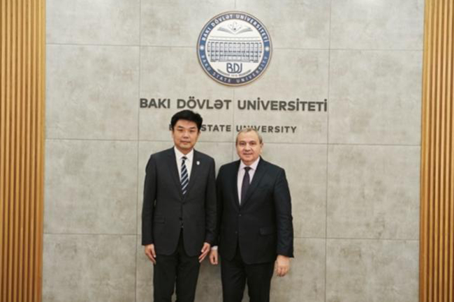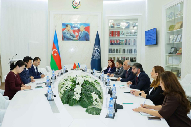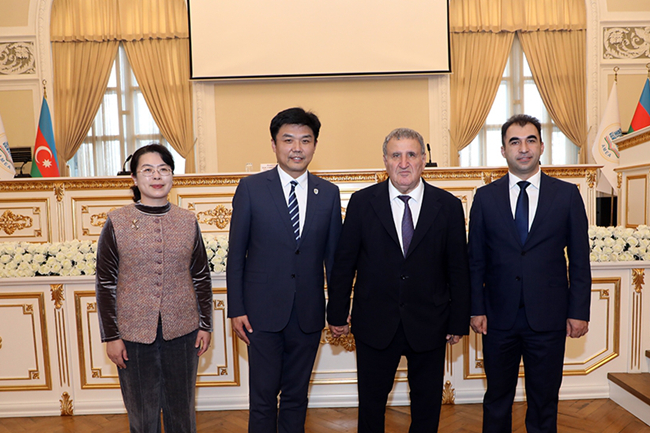 11月1日上午,代表团访问阿塞拜疆国立经济大学,会见校长阿达拉特·穆拉多夫和副校长胡赛因·哈萨诺夫。赵刚介绍了北外阿塞拜疆语专业建设成果及“语言+经贸”复合型人才培养方向,提出双学位合作设想。双方就此达成共识,阿方校长表示,计划派送专员赴北外考察具体合作细节,两校签署《北京外国语大学与阿塞拜疆国立经济大学合作谅解备忘录》。