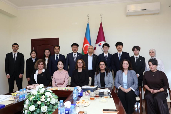 10月31日上午,代表团访问阿塞拜疆卡扎尔大学,会见大学创始人、理事会主席哈姆雷特·伊萨汗勒及校长拉齐娅·伊萨耶娃等。赵刚介绍了北外在语言教学、学科发展、区域研究等方面的最新成果,尤其是阿塞拜疆语专业的建设情况。拉齐娅·伊萨耶娃则重点介绍卡扎尔大学发展概况,双方就合作开展格语人才培养等工作进行了深入交流。会晤后,赵刚与北外阿塞拜疆语专业赴卡扎尔大学学习的5名本科生开展座谈,随后访问了卡扎尔大学中国研究中心并代表北外向中心赠书。赵刚为卡扎尔大学师生作了题为《中国外语教育的发展与变革:以北京外国语大学为例》的主题讲座,并与在场师生进行了互动交流。