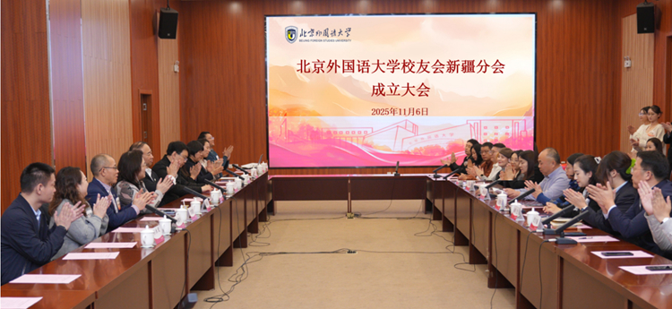 2025年11月6日,北京外国语大学校友会新疆分会成立大会在新疆大学红湖校区举行。北外党委书记王定华出席大会,在疆北外校友齐聚“丝路明珠”乌鲁木齐,共同见证这一重要时刻。大会由校友办主任、教育基金会秘书长姚雪主持。