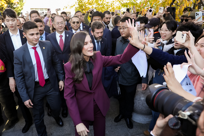 11月13日,西班牙王后莱蒂西娅访问北京外国语大学。中国教育部党组成员、副部长任友群,国际合作与交流司司长杨丹,北外党委书记王定华,党委副书记、校长贾文键,党委常委、副校长赵刚出席活动。来自北外西班牙语葡萄牙语学院、国际关系学院、教育学院以及在京其他高校的300余名西班牙语专业师生参加活动。