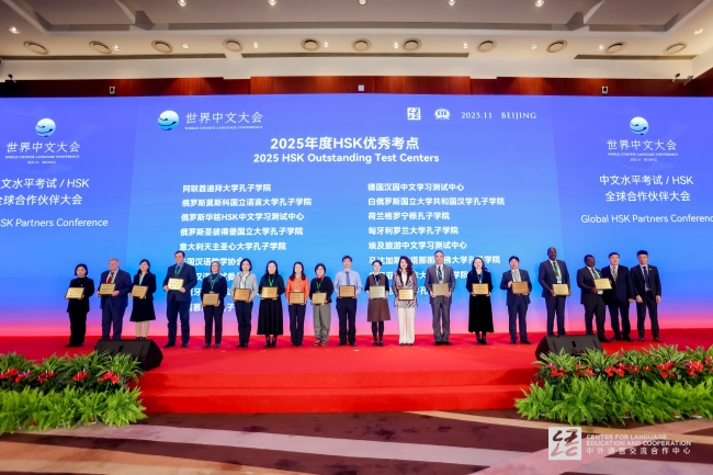 本次大会上,北外合作建设孔子学院及合作伙伴荣获多个奖项及成果。西班牙巴塞罗那孔子学院荣获“2025年度CTC优秀考点”称号;俄罗斯莫斯科国立语言大学孔子学院、德国慕尼黑孔子学院、匈牙利罗兰大学孔子学院荣获“2025年度HSK优秀考点”称号;俄罗斯莫斯科国立语言大学孔子学院案例获评“2025孔子学院数字化应用与实践入围案例”。