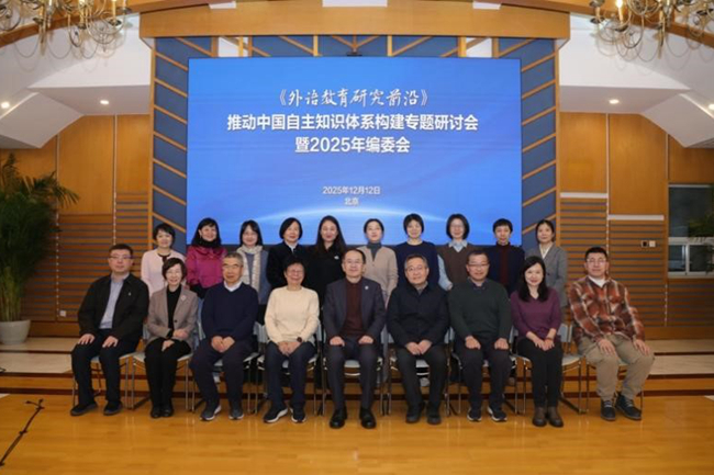12月12日,《外语教育研究前沿》推动中国自主知识体系构建专题研讨会暨2025年编委会举行。《外语教育研究前沿》期刊编委、审稿编辑齐聚一堂,深入探讨新时期学术期刊在提升学术引领力、出版服务力和国际传播力方面的创新举措,为推动中国哲学社会科学自主知识体系构建与教育强国建设贡献力量。北京外国语大学校长、党委副书记,《外语教育研究前沿》主编贾文键出席会议。