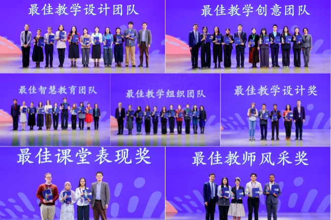 活动从中国院校团队评选出“最佳教学设计团队”“最佳教学创意团队”“最佳智慧教育团队”“最佳教学组织团队”,从本土中文教师评选出“最佳教学设计奖”“最佳课堂表现奖”“最佳教师风采奖”。语合中心师资管理处处长丁湘茹,外研社党委副书记、副董事长、总编辑刘捷等向获奖团队代表、本土中文教师颁发荣誉证书和奖杯。