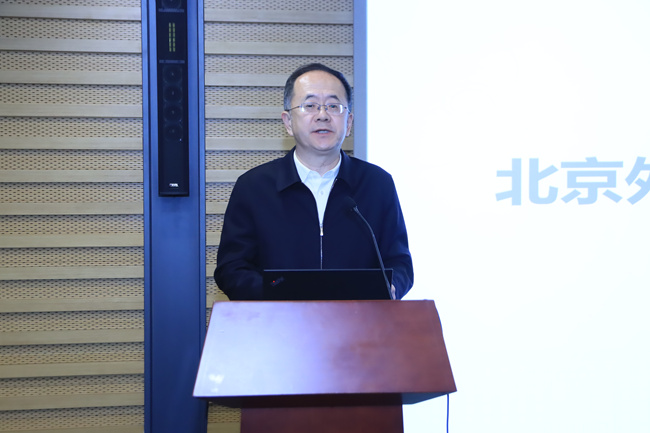 在政策解读环节,李晓辉围绕中外合作办学的规范管理与质量提升作专题报告,重点结合质量评估指标,从申报流程、内部治理、风险防范等方面进行了系统讲解。国际交流与合作处处长和静详细介绍了北外中外合作办学整体情况,深入解读了《北京外国语大学中外合作办学管理办法》及校内申报流程,明确了归口管理、统筹协调的工作机制。在经验分享环节,国际关系学院院长谢韬结合与英国基尔大学合作办学实践,从项目设计、教学管理、质量保障等方面分享了经验。国际商学院常务副院长李思飞围绕国际商学院中外合作办学项目申报与办学实践,从选校选专业、材料准备、答辩要点、未来挑战等方面作了经验分享,并提出聚焦“多语种+前沿领域”、布局硕博高层次办学等发展建议。
