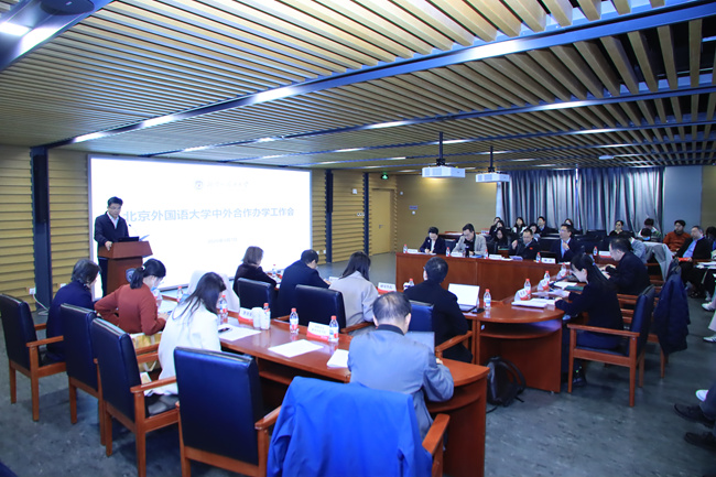 4月7日,北京外国语大学中外合作办学工作会召开。校长、党委副书记贾文键出席会议并讲话,党委常委、副校长赵刚主持会议。教育部中外合作办学法律专家、中国政法大学李晓辉教授应邀作政策解读,相关职能部门及各教学科研单位负责人、外事秘书等近80人参加会议。